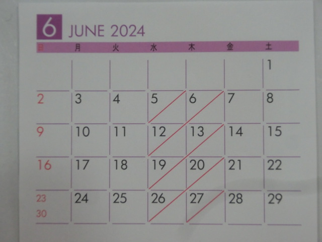 6月の 店休日