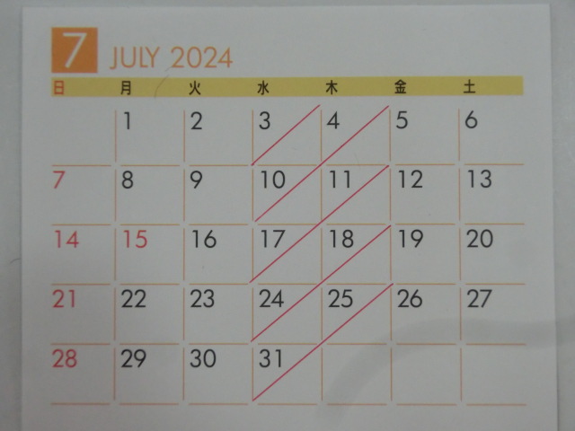 7月の 店休日