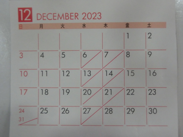 12月の 店休日