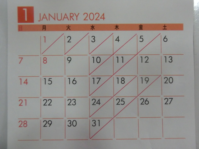 1月の 店休日