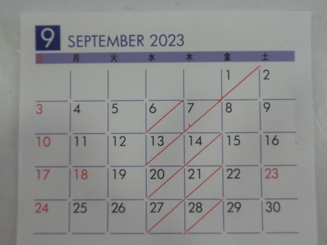 9月の 店休日
