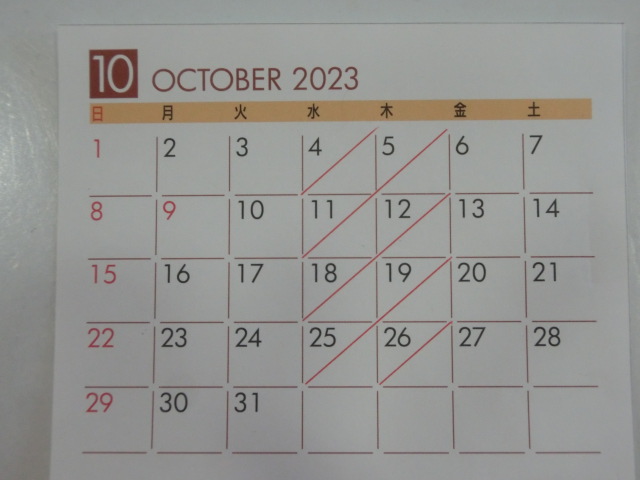 10月の 店休日
