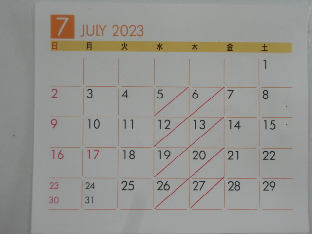 7月の 店休日