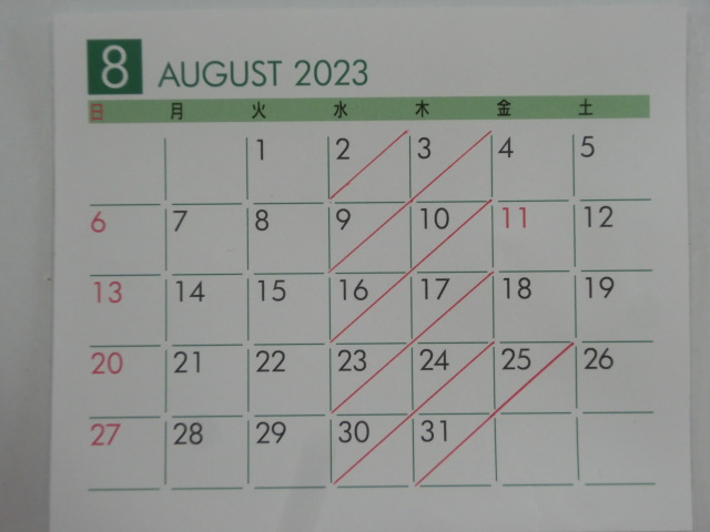 8月の 店休日