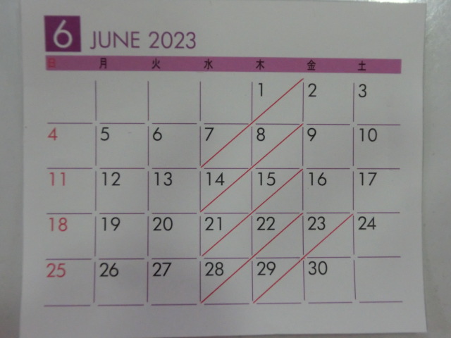 6月の 店休日