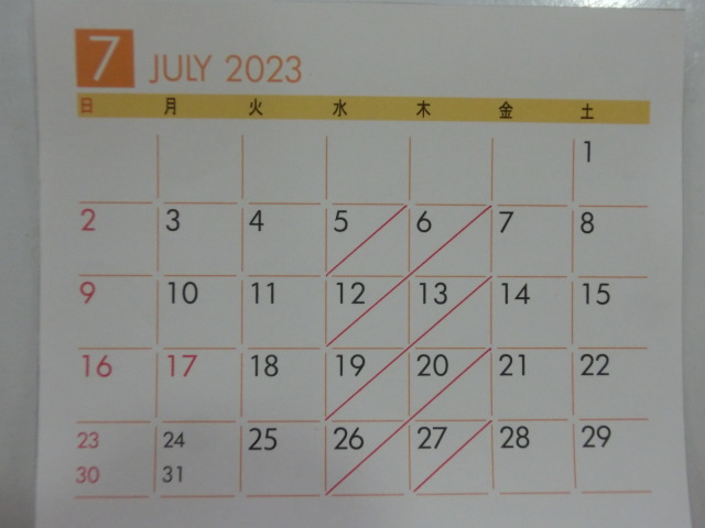7月の 店休日
