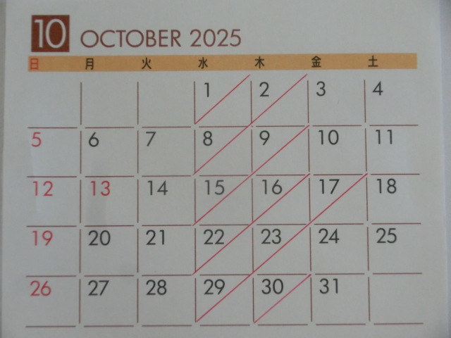 10月の 店休日