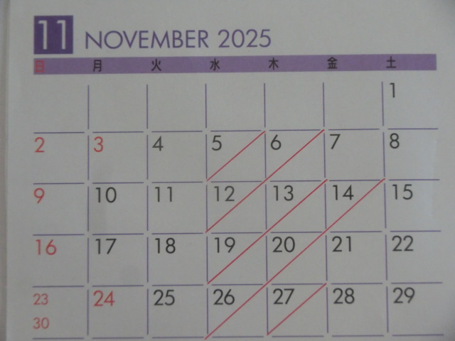 11月の 店休日