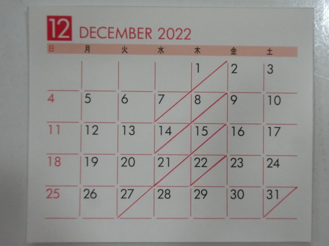 12月の 店休日
