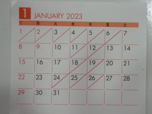 1月の 店休日
