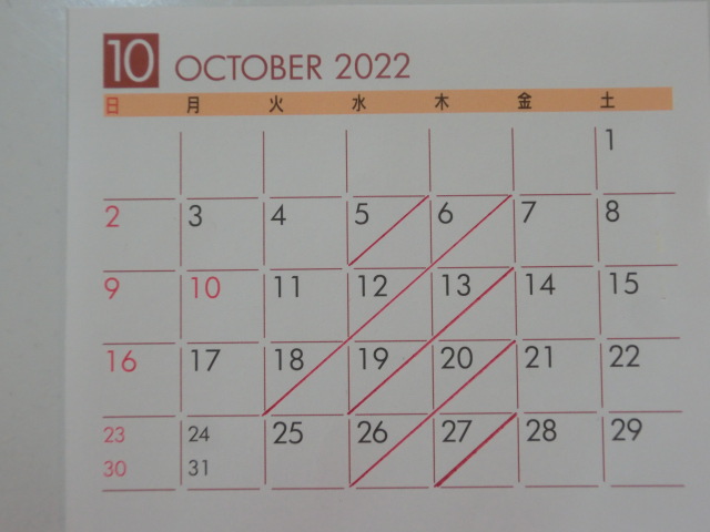 10月の 店休日