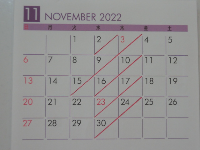 11月の 店休日