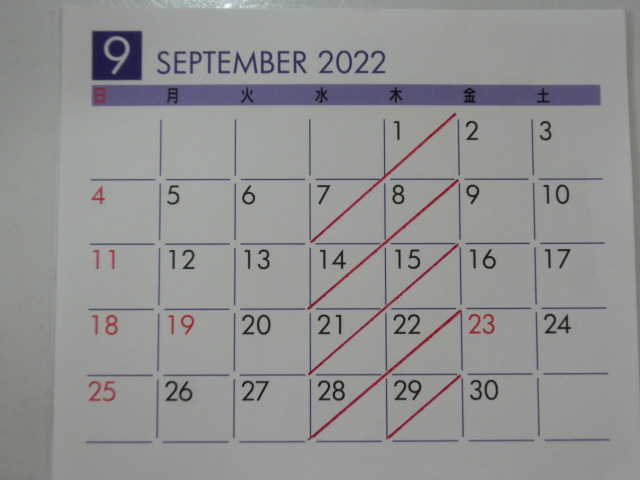 9月の 店休日