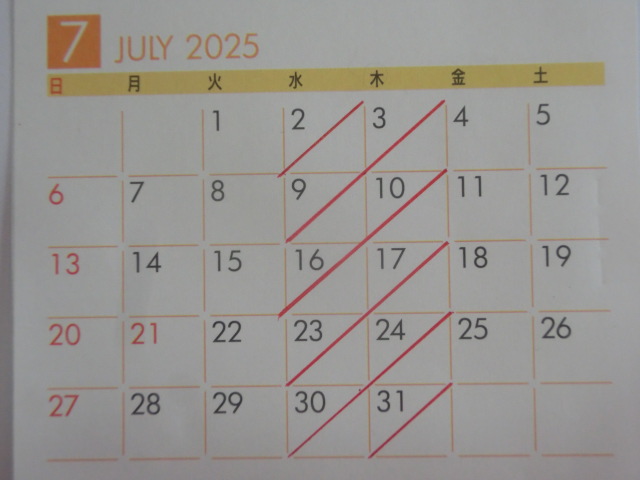 7月の 店休日
