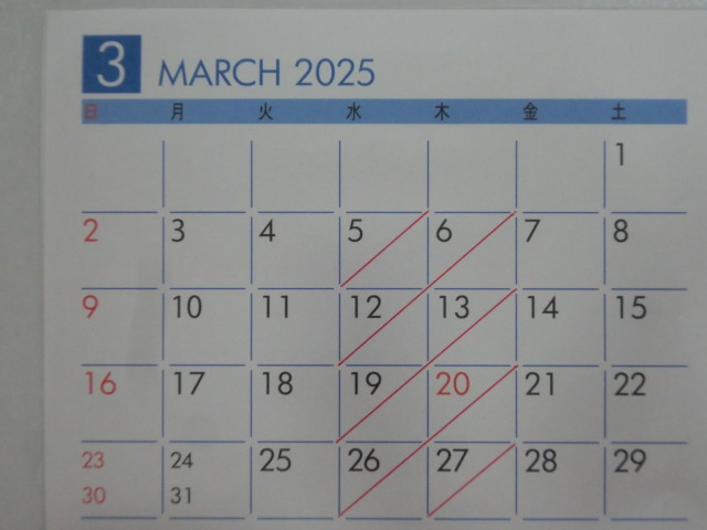 3月の 店休日