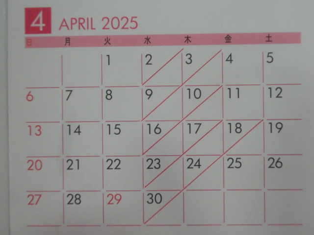 4月の 店休日