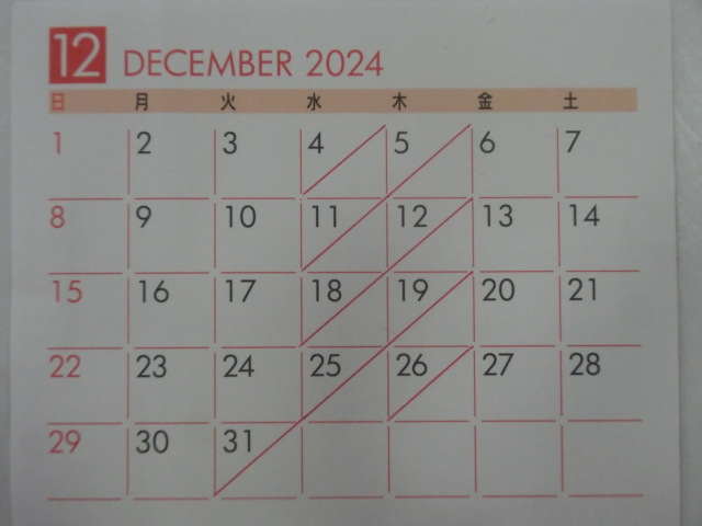 12月の 店休日